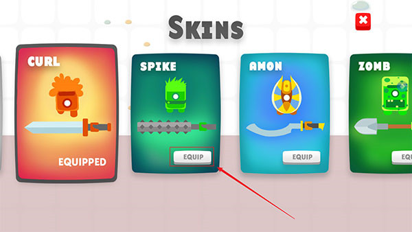 3、点击【EQUIP】按钮可以获得对应的皮肤
