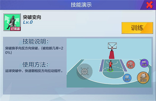 (2)篮球手可以选择自己喜欢的技能,收集材料升级技能等级