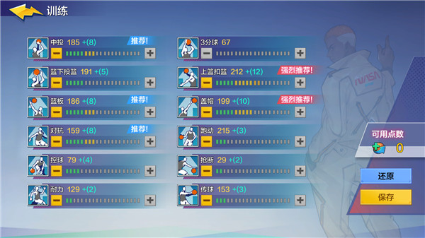 对于一名大前锋来说,进攻防守时大都靠近篮下,上篮扣篮是强烈推荐项目,盖帽则是防守端的一大杀招,擅长使出背身跳投的玩家可以提升中投属性,而侧重防守、抢板的玩家则要着重提升篮板和对抗属性。跑动属性有助于大前锋与后卫球员作出挡拆、空接配合,我们可以选择适量叠加。