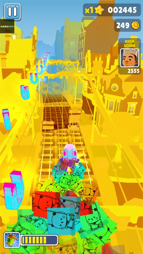 地铁跑酷恶魔8.0定制版是一款由网络大神定制的专属版本,该版本最大的亮点在于整个游戏场景采用了金灿灿的黄金配色,让游戏充满异世的神秘高级感,给人一种尊贵、高端、大气之感。并且游戏内的金币也被修改成了磁铁道具的模样,使得游戏整体变得更加多样化和有趣。在这“富丽堂皇”的地铁世界,你将感受一场独特的跑酷冒险之旅。
