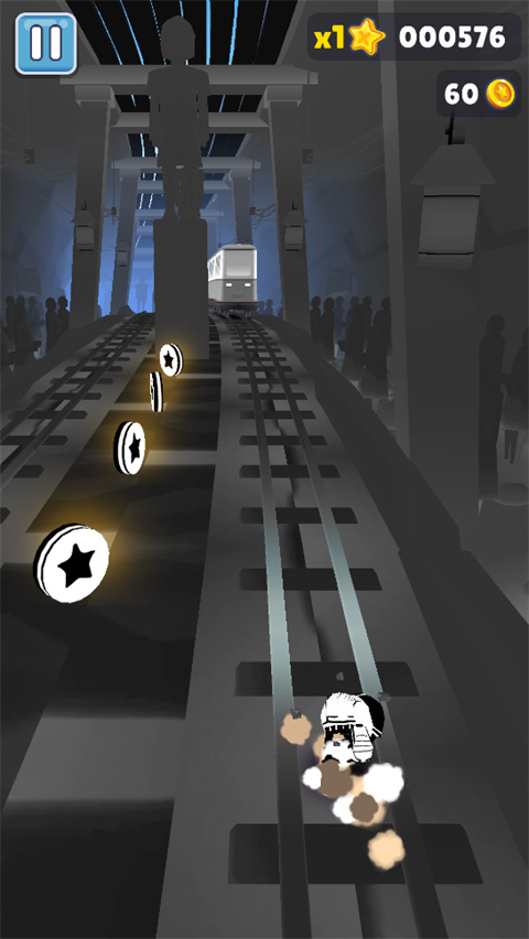 8、当你在3条火车轨道上接金币时,最后一辆火车速度是最快的。