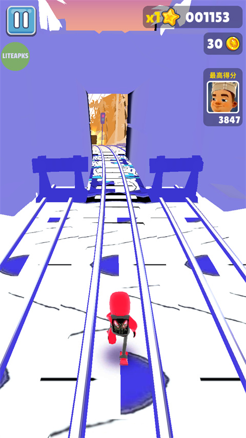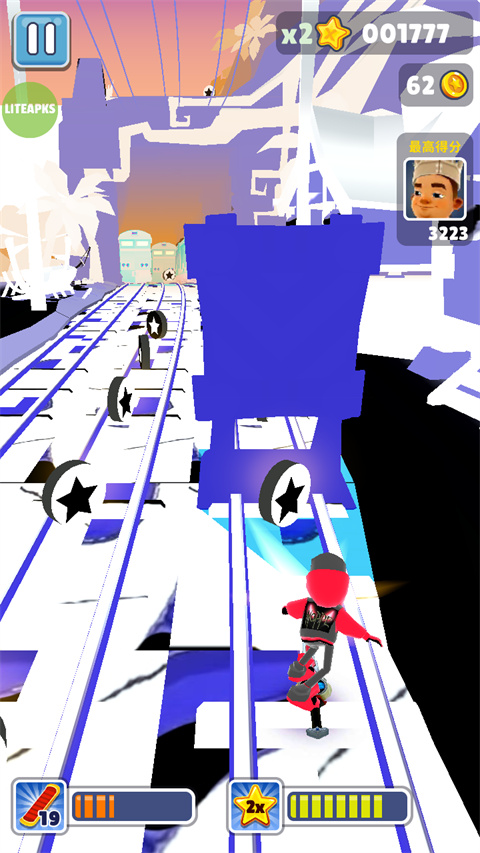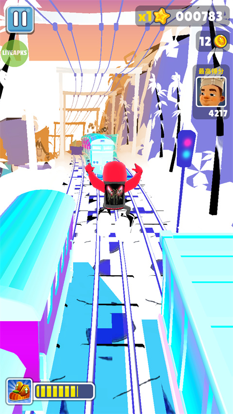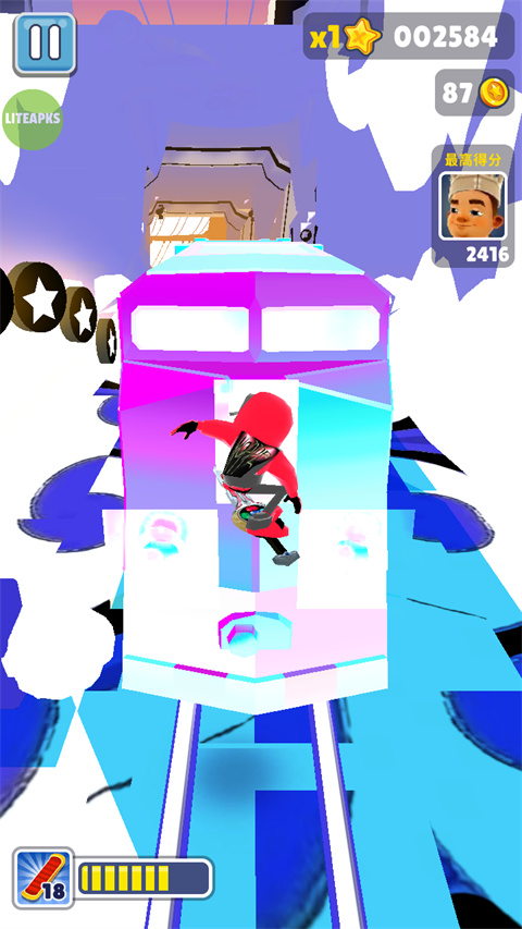 4、超刺激的游戏体验,躲避障碍物和追赶者,跳过高墙和地铁轨道等。
