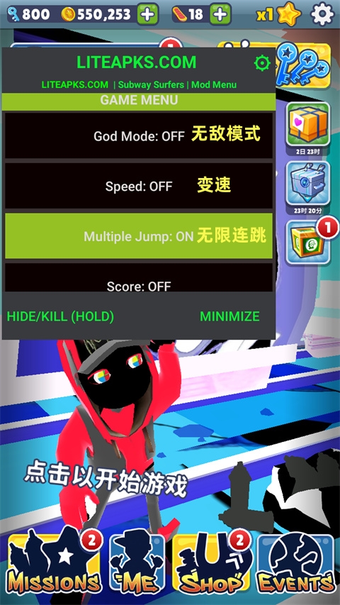 3、贴心内置游戏菜单,一键开启无敌跑酷模式,你的跑酷世界规则由你来书写!
