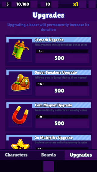 1、商店里有不少得分倍增道具,在跑酷前使用就可以翻倍了。