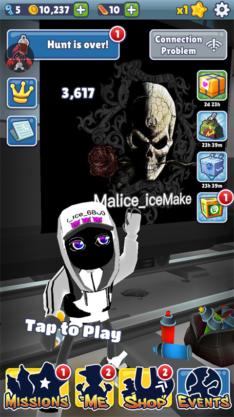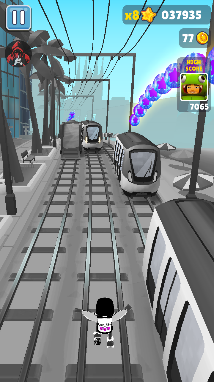 2、丰富多样地铁跑酷游戏过程里收集到的金币和道具,玩家可以通过这些购买或者兑换新的角色、滑板和道具,比如穿着绿皮的害虫、脑袋可以当篮球的机器人、戴着萌系兔子面具的怪大叔、目光呆滞的僵尸大姐等等。