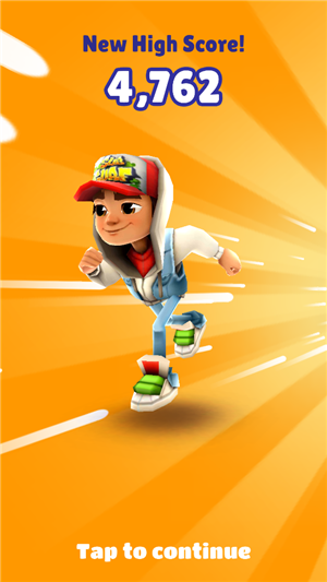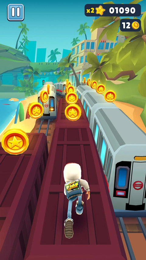 在地铁中跑酷,拾取金币道具获得分数,躲避障碍和后面追赶自己的警察