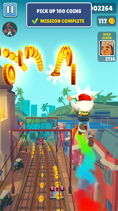 地铁跑酷孟买内置菜单版是基于地铁跑酷国际服孟买的内置菜单版本,一键解锁全角色、全滑板、无限资源,开启无敌模式、无限连跳、穿墙、变速等强大功能,致力于给大家带来极致的游戏体验,不再为游戏难度和游戏内资源而发愁,随心修改游戏规则,建立属于您的地铁跑酷世界。这一次,我们的老伙计杰克来到了孟买,杰克的艺术之魂正熊熊燃烧!他绝对不会错过这个机会,在这儿展示他的跑酷技术,但如同我们熟悉的状况,这里的警察也不是好惹的!为了维护市容努力的胖警察也会紧追在后,你可以帮助杰克顺利逃脱追捕吗?