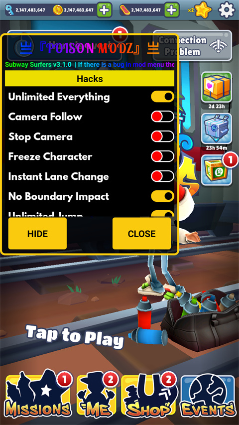 1、内置黑客菜单,一键解锁强大金手指,开启您的无尽跑酷模式。