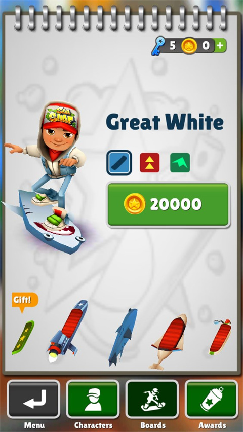 5、游戏中还有很多不同的滑板可以用金币进行兑换,给予玩家们不同的视觉效果;