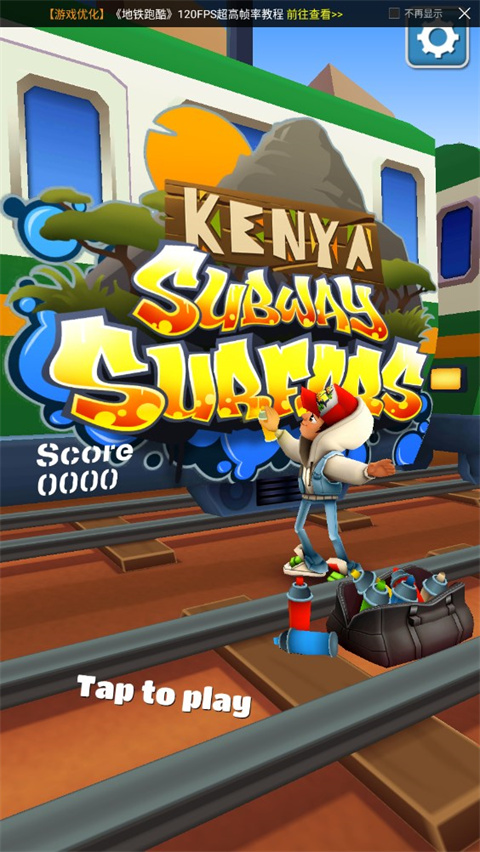 1、首先进入地铁跑酷肯尼亚游戏内,这里点击屏幕开始游戏,因为是肯尼亚版本,所以从下面图片可以看出我们来到了新地区;