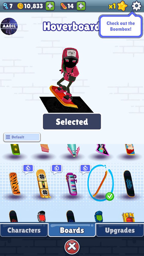 玩起来也很有意思,手指灵活操控,跳跃下滑避开障碍物,还能召唤滑板加速。撞到障碍物会被保安带走,不过可以用钥匙复活继续跑。游戏音乐休闲,背景切换自由,金币收集后还能买装备。总的来说,这个版本改动挺大的,新增内容也多,值得试试。