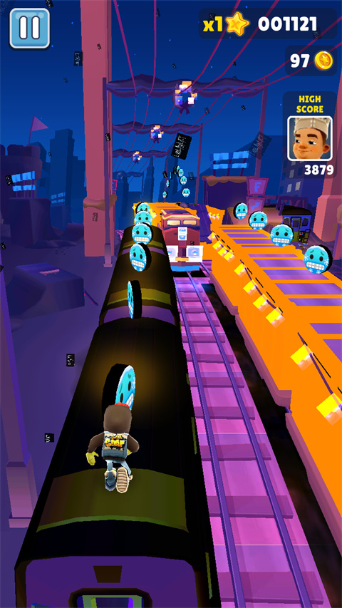 8、动感的背景音乐与快节奏的跑酷玩法,城市的美景在飞速的后退,我们在疯狂的向前奔跑,争取夺得更高分数吧;