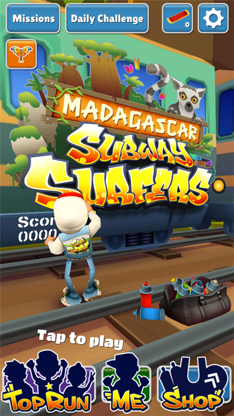 《地铁跑酷 马达加斯加》(Subway Surfers: Madagascar)是著名的跑酷游戏《地铁跑酷》(Subway Surfers)的一个版本,该版本的故事背景设置在马达加斯加,是游戏中的一个扩展场景。游戏由Kiloo和SYBO Games开发,最初发布于2012年。 在这个版本中,玩家将继续扮演主人公,进行无限跑酷的冒险。游戏的玩法依然是跑酷式的操作,玩家需要操控角色在一条地铁轨道上不断奔跑,并且避免各种障碍物和追赶者的追捕。