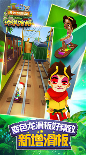 《地铁跑酷 马达加斯加》是经典跑酷游戏的一个特别版本,背景设定在美丽的马达加斯加大岛。玩家将继续扮演主角,在热带风情的环境中奔跑,穿越丛林、沙滩和特色建筑,体验独特的岛国文化。游戏延续了经典的跑酷玩法,操作流畅,画面精美,新增了许多有趣的角色和道具,比如时尚角色艾娜和她的变色龙滑板。游戏还加入了挑战任务和每周狩猎代币系统,完成任务可以获得奖励。此外,玩家可以解锁更多神秘角色和道具,还能与好友比拼分数或互相帮助赚金币,增加了社交互动的乐趣。总的来说,这个游戏不仅延续了系列的玩法,还带来了全新的视觉和文化体验,玩起来非常有趣!