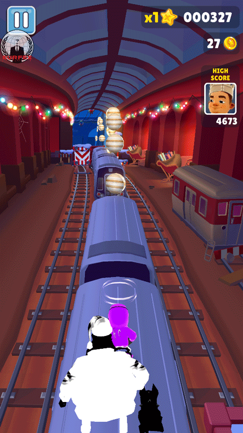 有地铁也会有山洞,中间有一根柱子,左右两边会无规律的有火车飞驰过来,这个时候就要考验玩家的应变能力。