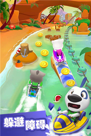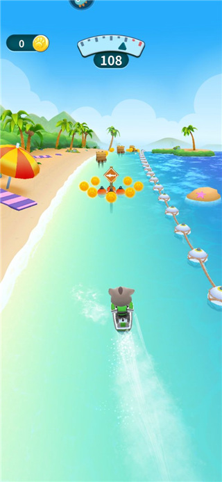 2、将跟随汤姆猫一起进行刺激的水上摩托赛车竞速玩法。