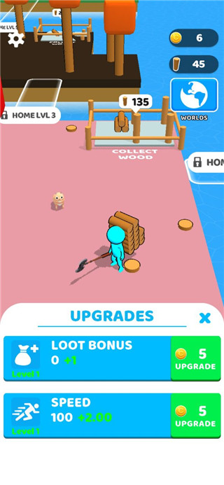 7、还可以对自己的速度进行提升,帮助自己更好的砍伐树木,除此之外,游戏当中还有很多玩法等着玩家们自行下载体验。