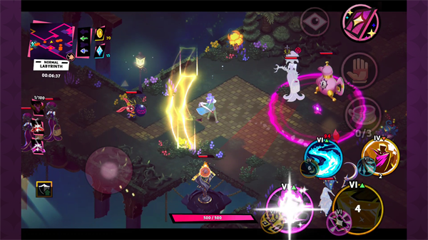 2、2D 等距快节奏动作: 挑战多多,但交战公平。在击破各种奇妙生物和残暴老怪,一路前行的同时,构筑起自己的魔法储备。