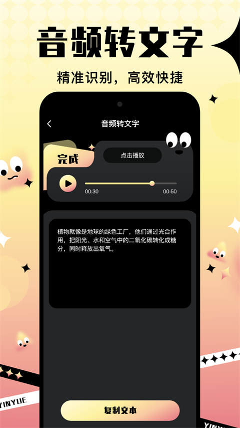只需输入文字,音阅App就能智能地将文本转化为语音,无需任何专业技能。同时,你可以根据自己的需求,对语速、音调、音量等进行精细调整,打造个性化的配音效果。