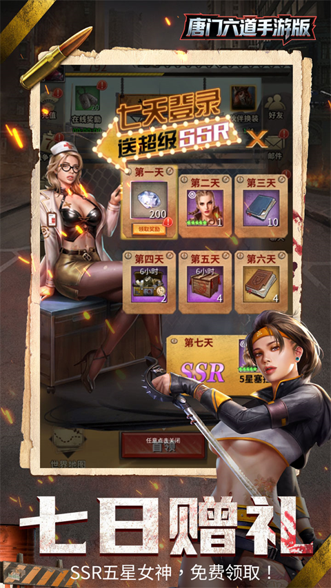 1、累计七天登陆送SSR强力英雄