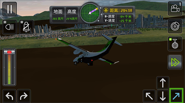 5、想要让飞机拐弯,可以按住绿色方框内的按钮进行转弯;