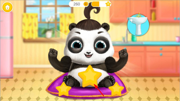 5、熊猫宝宝吃完食物之后会在游戏页面显示三颗星,玩家点击星星即可转换成金币;