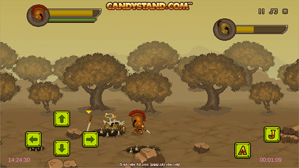 2、进入游戏后,左边上下左右按钮操控角色的移动,右边A为攻击,J为跳跃