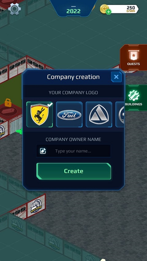1、开局玩家可以从给出的车标中进行挑选,仿照现实生活车企提供类似车标,增加了代入感,之后可以命名工厂名字。命名支持中文输入。