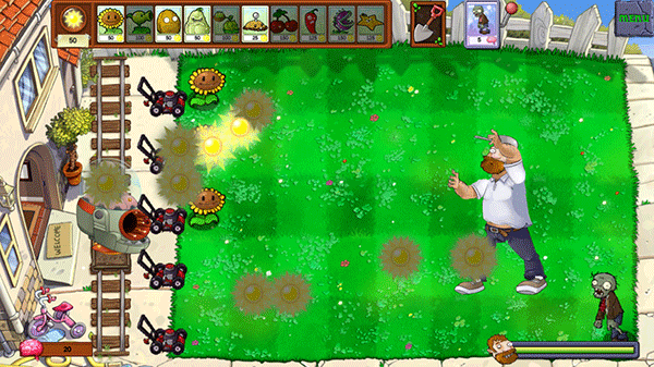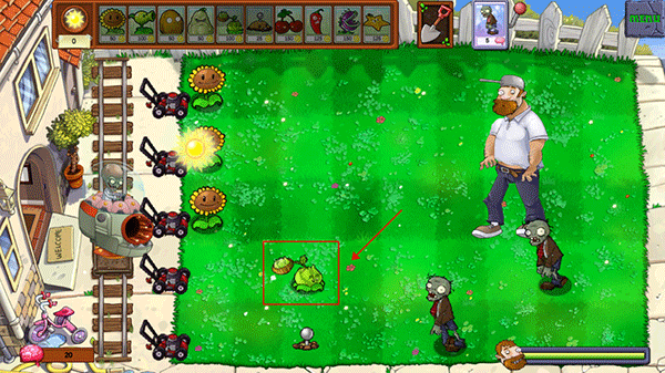 5、但是需要注意的是,游戏中会有戴夫出现,戴夫会袭击我们的植物,并且在袭击向日葵后我们的阳光会被偷取