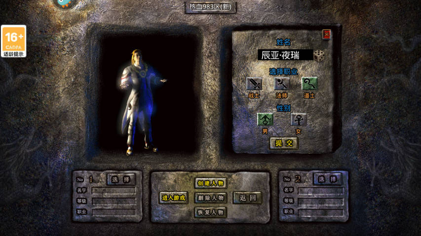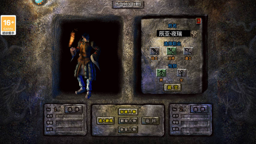 1、在本站下载好热血传说点卡赏金版,运行游戏并创建角色;