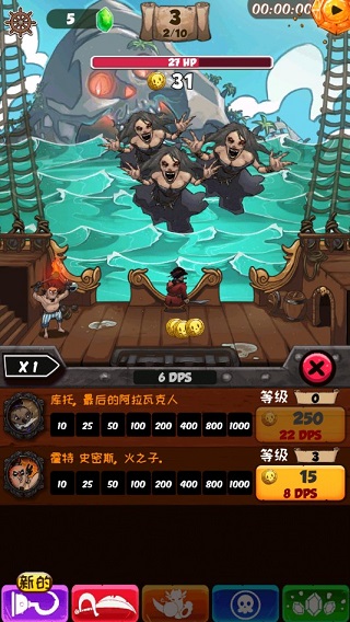 1、首先基本的操作玩法就是持续不断的点击屏幕来斩杀航海过程中遇到的各种怪物和泰坦首领,每次挑战成功后都有金币奖励。