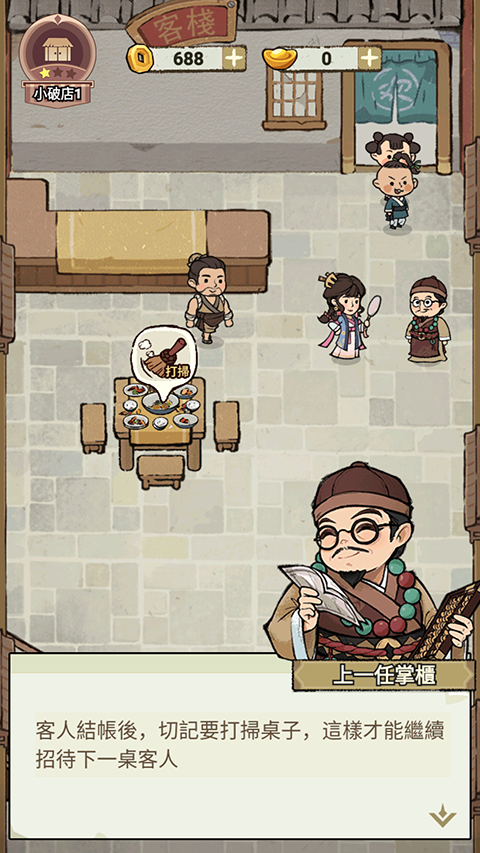 1、我在江南开客栈游戏整体玩法还是较为简单的,玩家一开始只需要将屋子打扫干净。