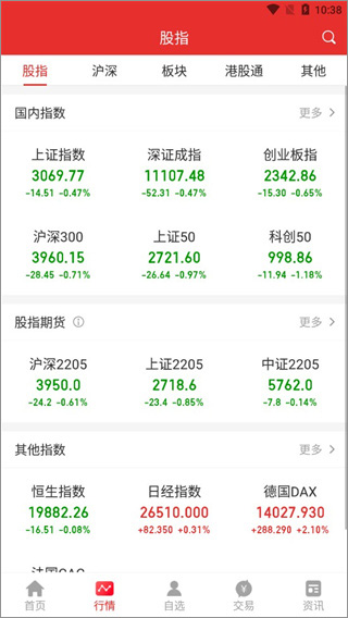 3、在“行情”页面,可以了解沪深、板块、港股、美股、全球最新的行情以及分类等信息。