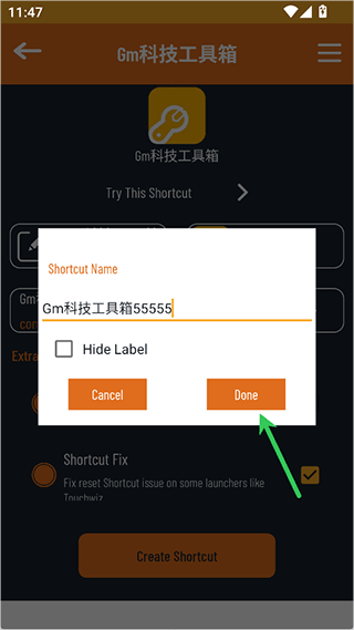 5、然后就可以创建好一个快捷方式并添加到手机桌面上