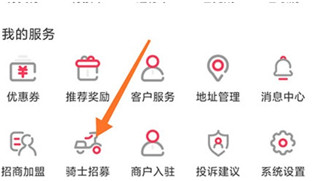 1、进入曹操跑腿的个人中心页面,点击骑士招募选项;