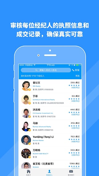 外居乐选择从业时间长,成交数量多的优秀经纪人合作。平台上有超过5000名优秀华人经纪人信息。您可以自由选择经纪人并与其直接联系。如果需要,也可以选择由外居乐推荐经纪人。