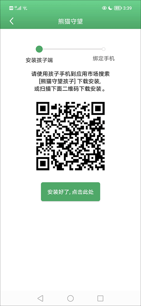 4、最后用孩子的手机扫描二维码安装客户端,绑定手机。