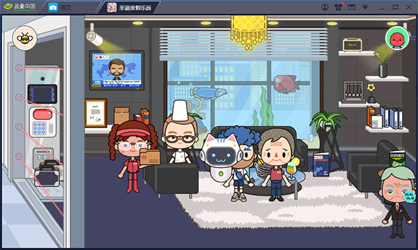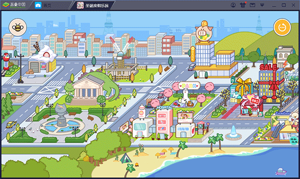 1、进入游戏就是一个城市,里面有各种各样的建筑物,小朋友们点击哪个建筑物,就会进入这个建筑物里,然后在这个建筑物里自由活动