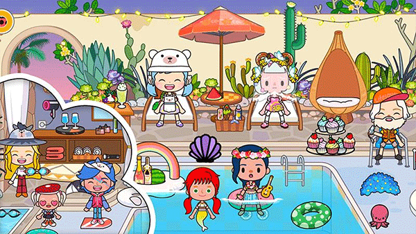 小朋友在游戏旅途上的一切准备从家开始,然后可以去到海滩游玩,去寻找小岛上的秘密;或者去到景区选购你最爱的纪念品,DIY最爱的面具,甚至可以在旅途中碰下运气看能不能拿到特殊的纪念品,最后可以在景点拍上几组照片留念,小朋友在这里的生活每天都充滿无限的好玩乐趣和冒险。不仅如此,圣诞度假乐园游戏最新版本还有不同的场景,搭配打扮场景,在装扮好之后就能轻松的截图以及分享保存,有需要玩这个游戏的小伙伴们就来这下载畅玩吧。