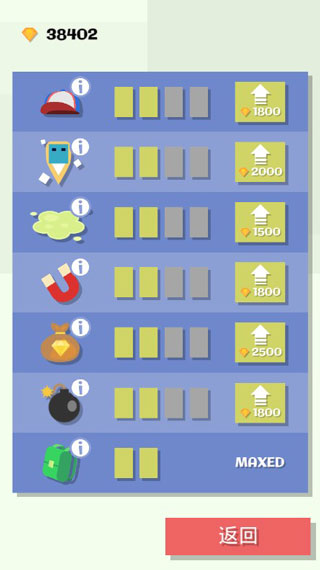 解锁升级技能,让你的跳跃旅程更加轻松,这里的技能模块比较多,加成金币,道具时长等等都有一定的增幅。
