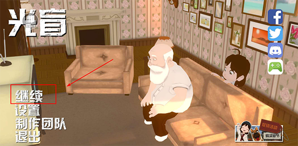 1、打开光盲游戏,点击【继续】即可开始游戏;