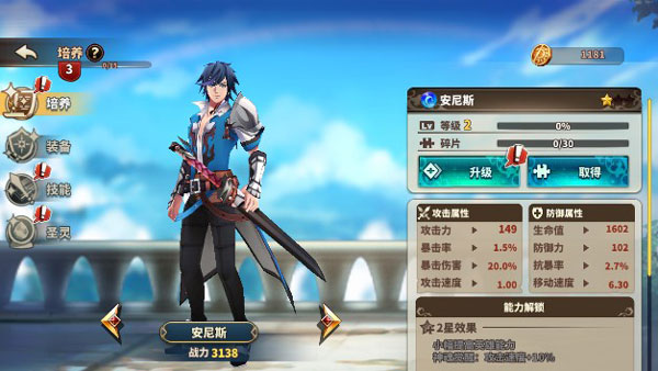 英雄的培养主要是增加角色的各方面攻击和防御属性,且通过相应角色碎片还能进行升品。