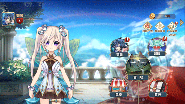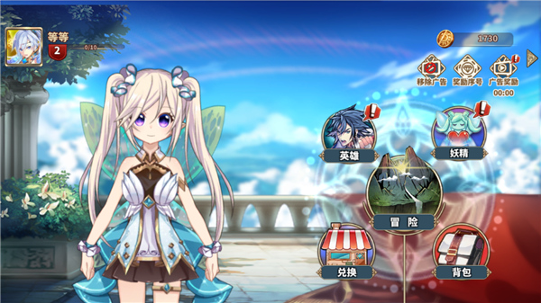 8、完成之后,进入游戏首页,玩家可以对自己的英雄进行培养或是进行冒险闯关。