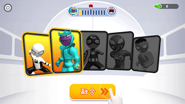 1、进到游戏内,首先选择两个游戏角色并将其融合;