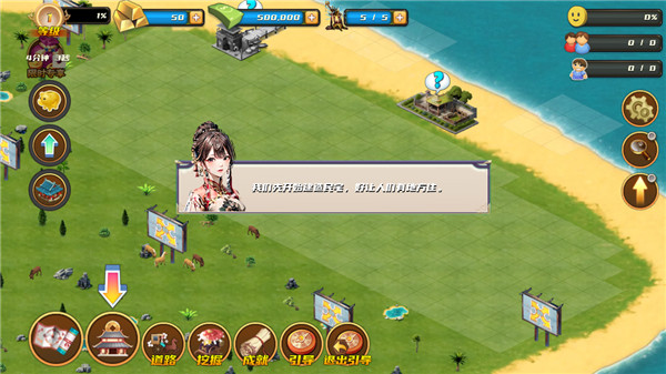 3、进入游戏后,我们需要建造民宅,点击建筑;