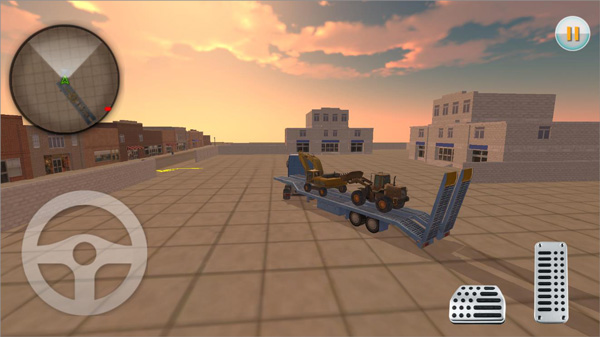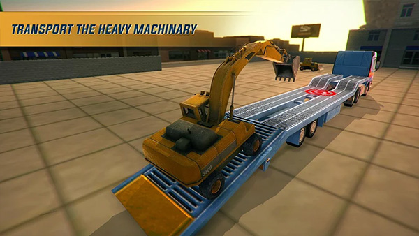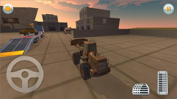 2、选择车型后,玩家需要控制挖机到运输车上,才能前往施工地;