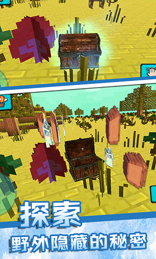 4、你还可以和小伙伴们一起去野外冒险,寻找更多的材料来让你们可以建造更多不同的物品。