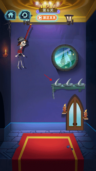 4、等到后期会发现关卡越来越难,就比如这一关出现了扎人的图钉,火柴先生需要远离那个陷阱之后才能割断绳子。