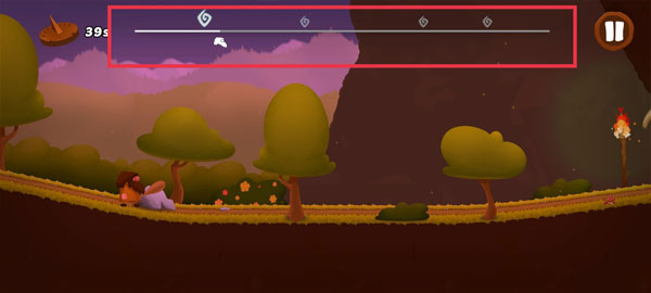 这上方的进度条会显示你跑酷使用的时间,到达存档点的位置显示以及剩下的进度数等。
