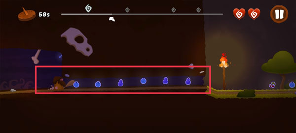 这种的通道就要使用右边的手指向下滑动,让角色贴近地上就可以滑动过去了。